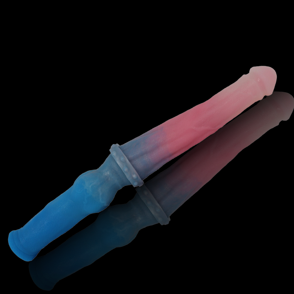 The Beastly Duo Dildo is a double ended dildo coloured in Faerie Floss, a cotton candy gradient. One end features a large dildo, with the other end featuring a canine inspired dildo. This dildo is perfect for someone who wants a dildo that can satisfy them in more than one way, or for playing with a partner.