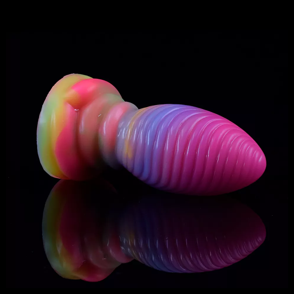 The Dragon's Egg Butt Plug is coloured in Radiant Sunset, our signature colour palette that glows in the dark. This egg shaped butt plug features ripples throughout the egg, providing extra stimulation. With a thin base and flared base, this plug will be locked in place when you get past its thickest part. This butt plug is perfect for people looking to warm up before they take on the bigger dragons and beasts that we have to offer.