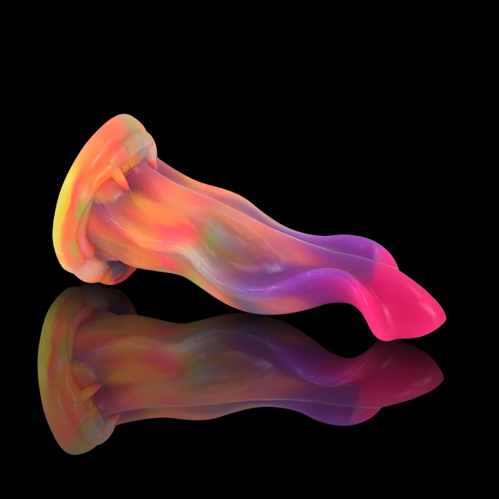 The Dragon's Tongue Dildo is a dildo coloured in Radiant Sunset, a vibrant gradient that glows in the dark. This dildo is shaped to resemble a large tongue capable of more than just teasing you. This dildo is perfect for someone who wants to try something new and experience being pleasured by a large tongue dildo.