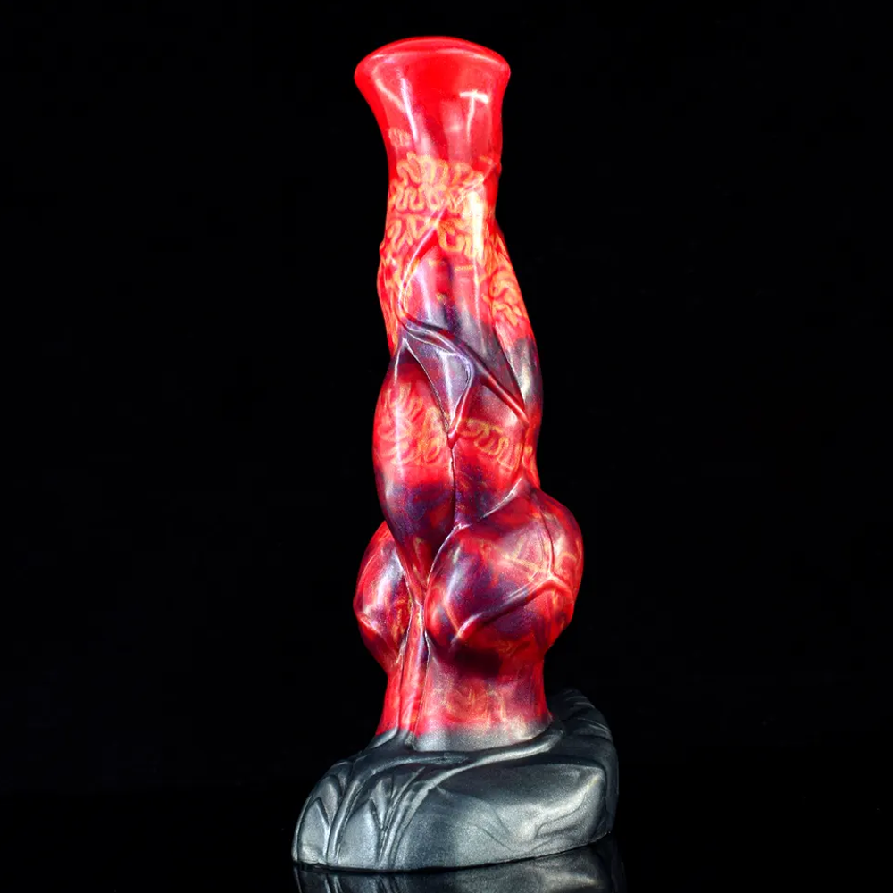 The Hellhound Dildo is a dildo coloured in Infernal Wrath, a fiery red gradient. This dildo has canine and equine features, with a dog knot near the base to lock you in and a flat head at the top of its long shaft. This dildo is perfect for those who who want to experience a unique, exciting way of being pleasured.