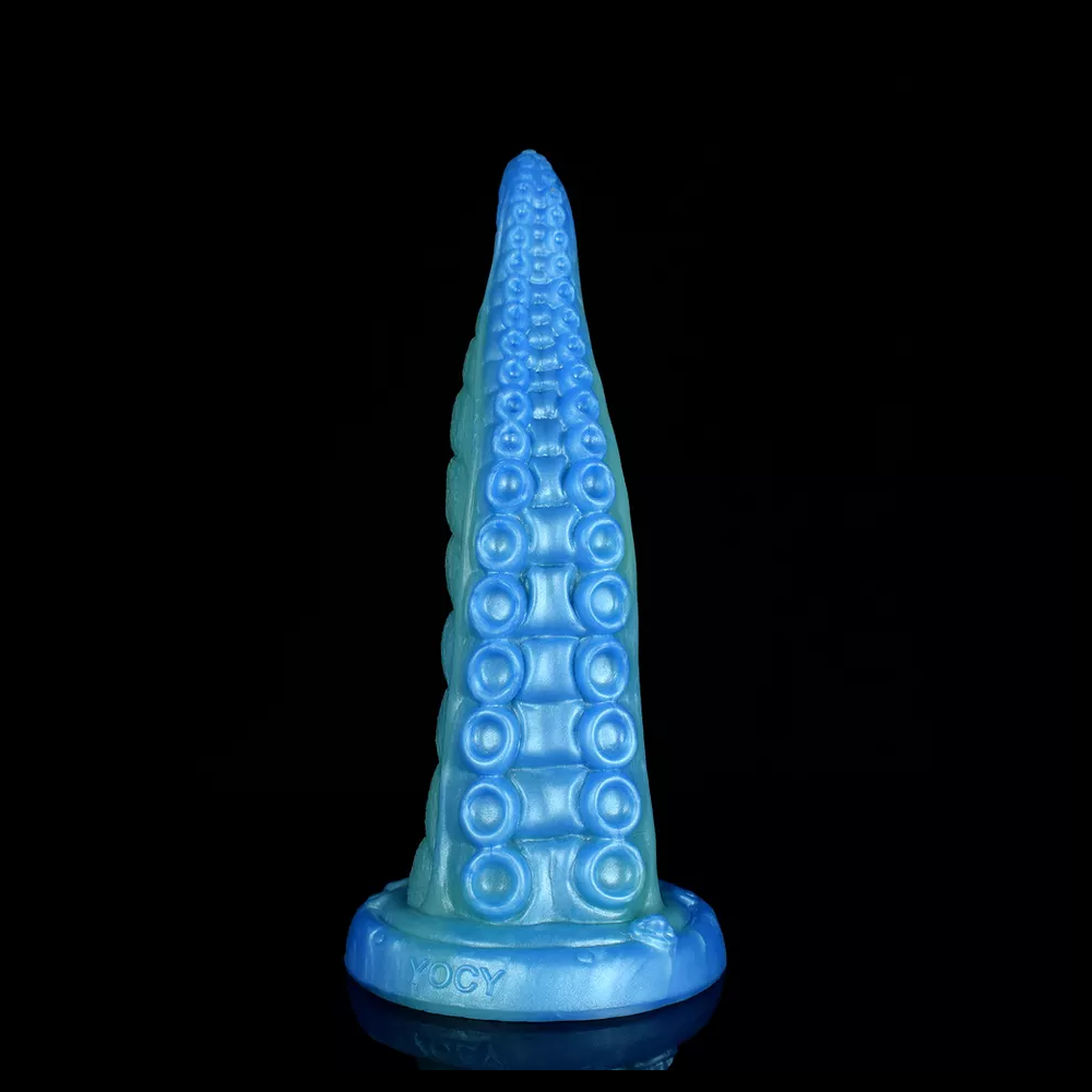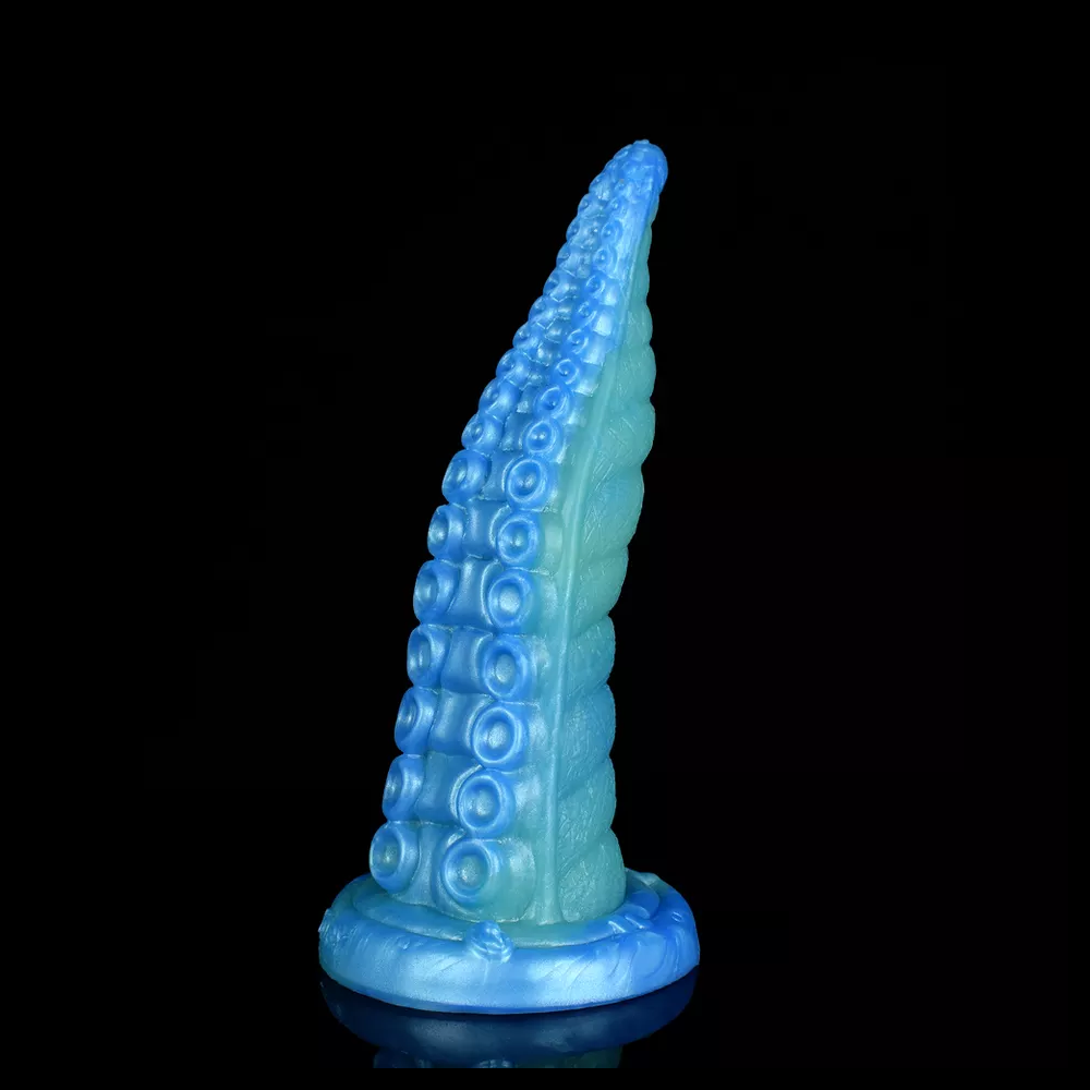 The Octopus Tentacle Dildo is a dildo coloured in Azure Depths, a mix of sea green and ocean blue shades. This octopus inspired dildo features suction cups along its increasingly thick shaft to provide stimulation in a way that no regular dildo can. This dildo is perfect for someone who wants to try something new and experience being pleasured by a tentacle dildo.
