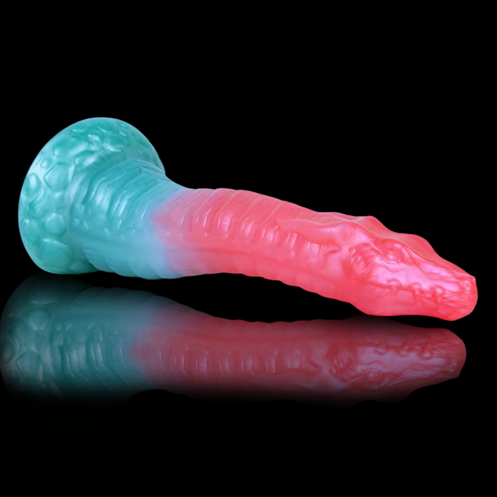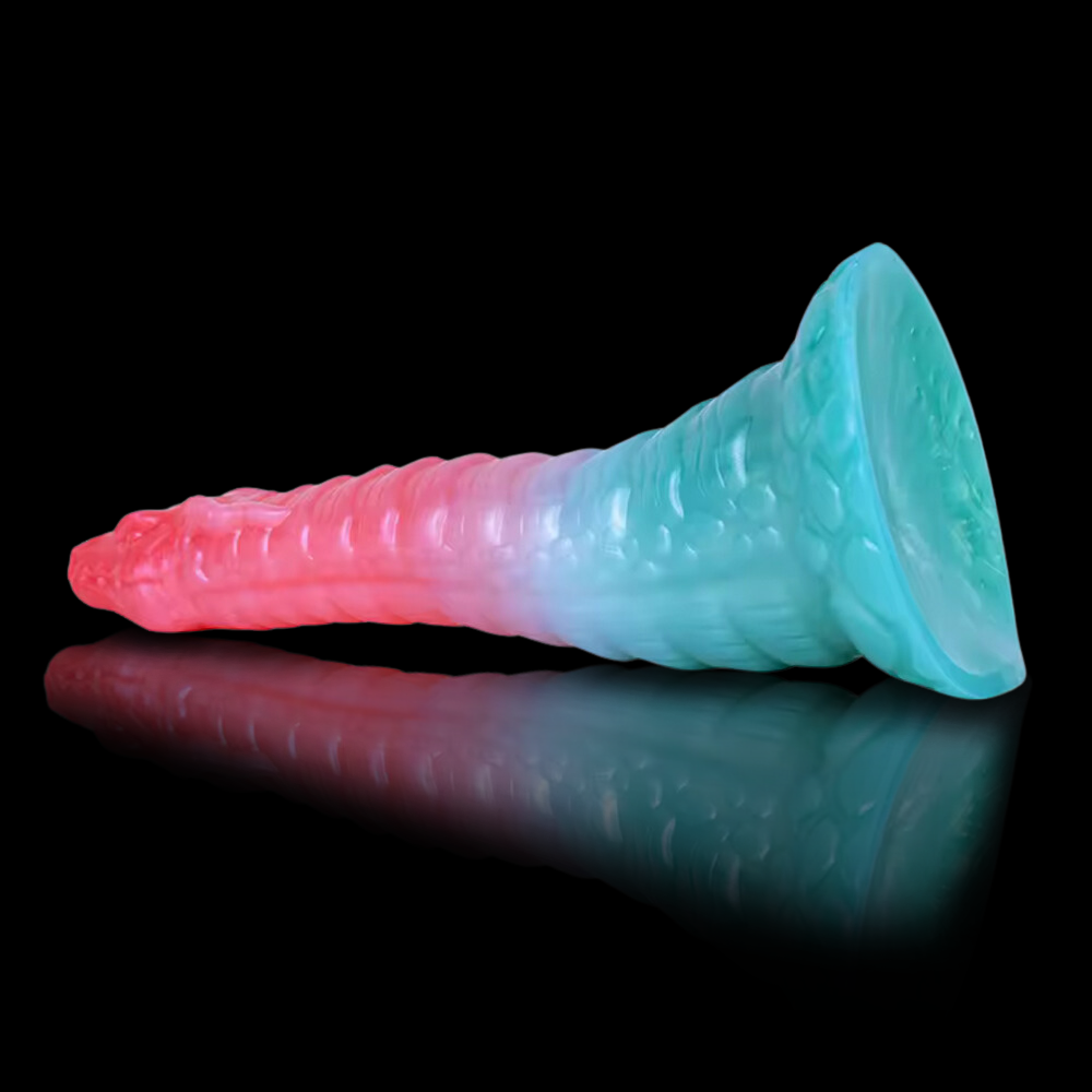 The Rising Dragon Dildo is a dildo coloured in Blooming Tranquility, a frosty blue to pink gradient This dildo features a curved shaft with scale-like ribbing that resembles the neck of the dragon, topped with a dragons head. This dildo is perfect for those who want to experience the pleasure that only a dragon can provide.