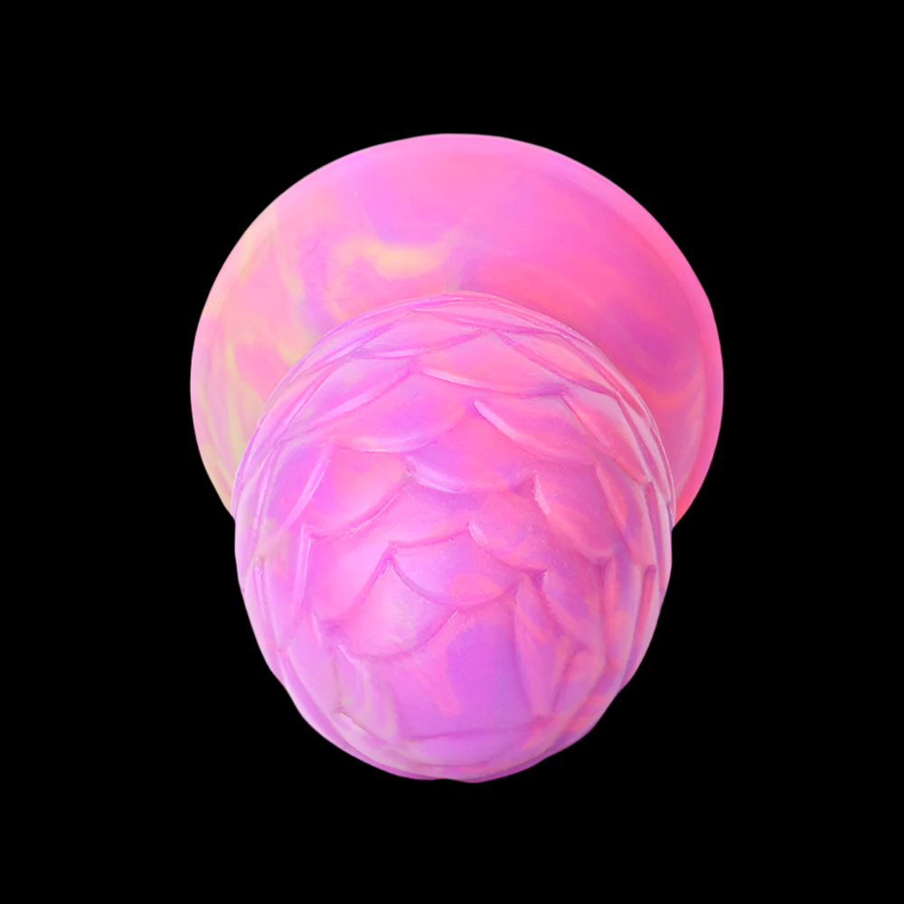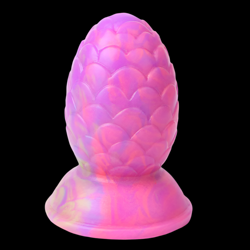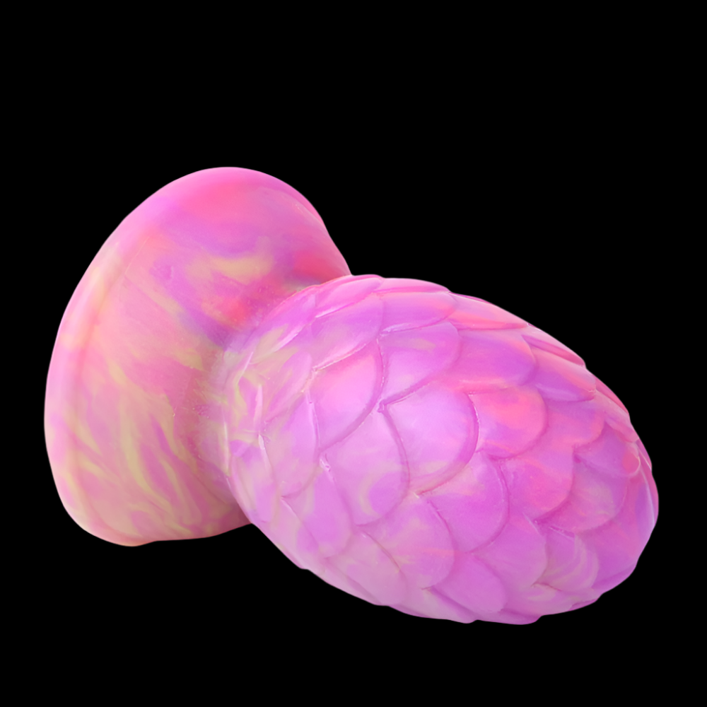 The Scaled Dragon Egg Butt Plug is a butt plug coloured in Fleeting Mirage, a mystical gradient of purple, pink, and yellow shades. This egg-shaped plug features a detailed scaled texture designed to stimulate with every movement. Its smooth, rounded shape delivers satisfying fullness and pressure. This plug is perfect for anyone ready to explore the darker side of fantasy pleasure.