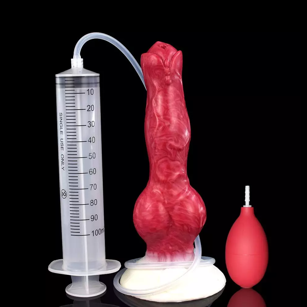 The Squirting Canine Dildo is a dildo coloured in Carnal Lust, a blood red gradient. This canine inspired dildo features a ribbed shaft, an enlarged bulb near the base to lock the dildo inside you and a cumtube that can be used to simulate ejaculation. This dildo is perfect for those who want to experience a different and exciting way of being pleasured, or for those looking for a dildo that can fill them up in more ways than one.
