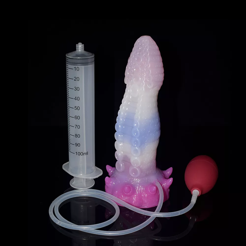 The Squirting Kraken Dildo is a dildo coloured in Ethereal Tides, a soft pastel gradient. This octopus inspired dildo features suction cups along its thick shaft to provide stimulation in a way that no regular dildo can, as well as a cumtube that can be used to simulate ejaculation. This dildo is perfect for someone who wants to experience being pleasured by a tentacle dildo that can fill you up in more ways than one.