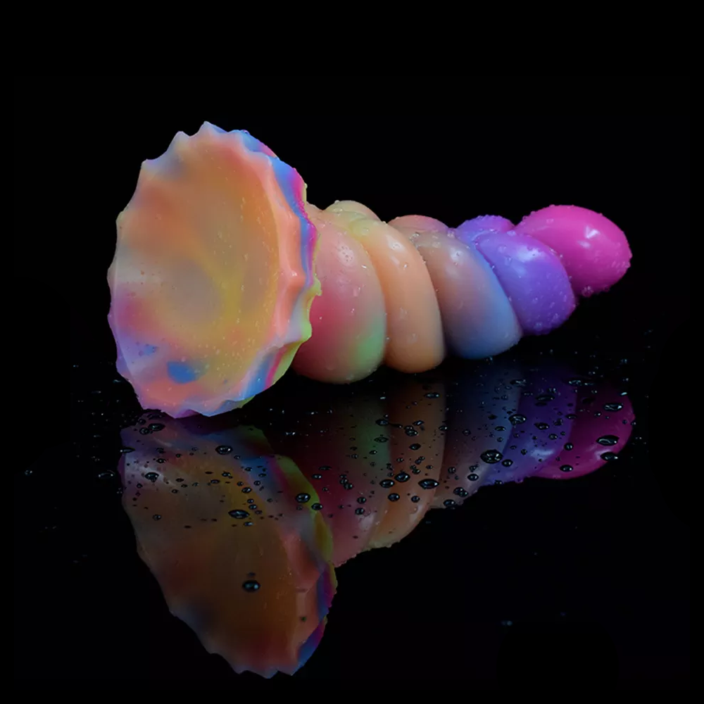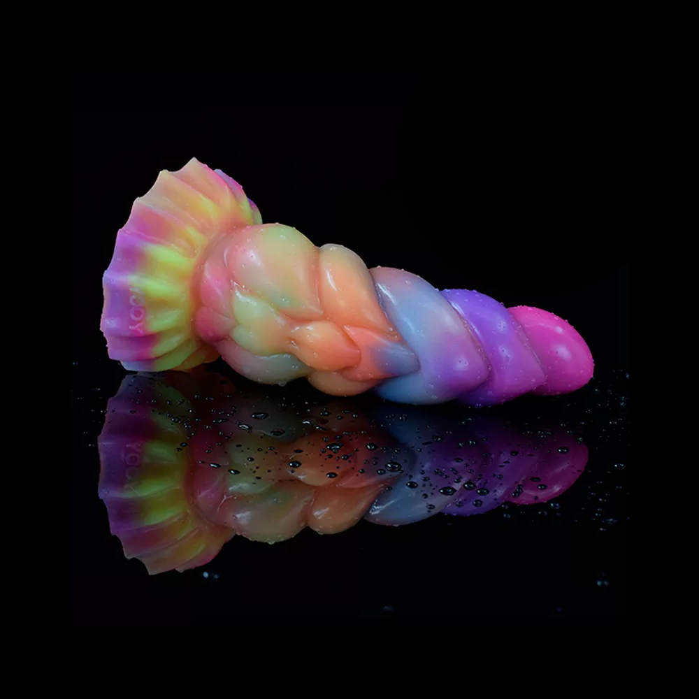 The Storm Wyrm Dildo is a dildo coloured in Radiant Sunset, a vibrant gradient that glows in the dark*. This unique dildo has lots of twists for you to enjoy as you go further down its shaft, which gets thicker with every spiral. This dildo is perfect for those who want to conquer a cyclone and find what waits for them in the eye of the storm.