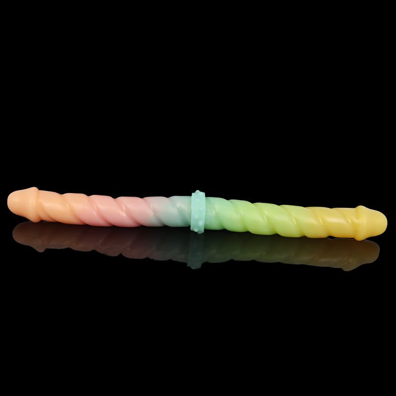 The Swirled Duo Dildo is a double ended dildo coloured in Pastel Fantasy, a vibrant pastel gradient. Both ends of this dildo feature swirled ribbing to enhance pleasure. This dildo is perfect for playing alone or for sharing with a partner.
