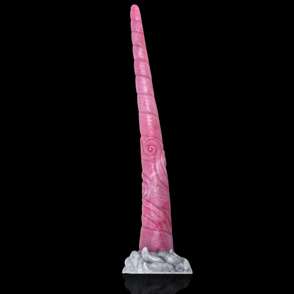 The Unicorn Dildo is a dildo coloured in Primal Desire, a marbled pink gradient. It features a long and flexible shaft that slowly thickens until you get to the base of the dildo, resembling a unicorn horn. This dildo is perfect for pleasuring your inner depths and fulfilling your fantasies.